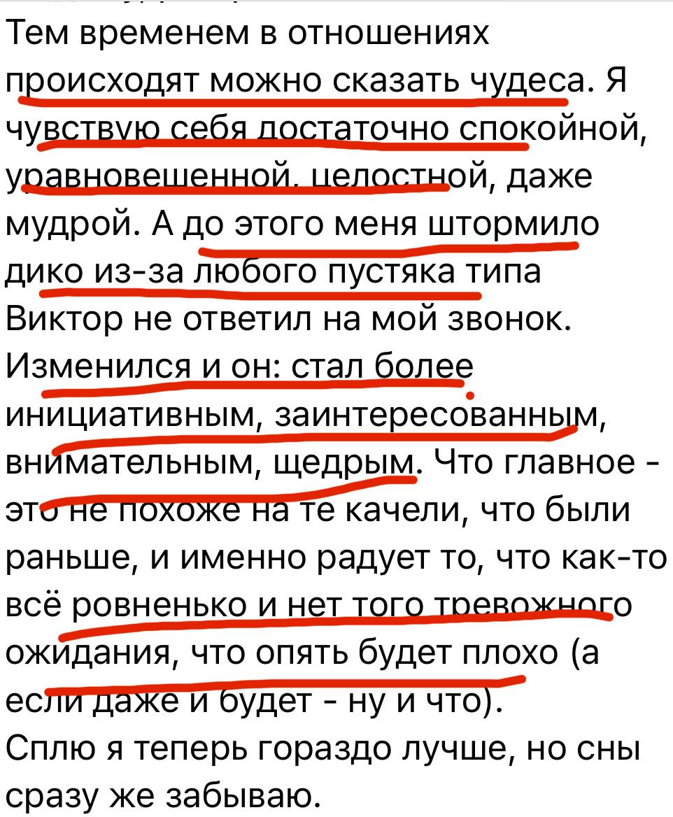 Вы перестанете бояться потерять партнера, а значит разрешите себе быть собой. В то же время — научитесь не обрывать душевную связь при встрече с болью. Будете уметь экологично реагировать на невнимание мужчины. Откроете для себя радость в жизни вне зависимости от отношений. Перестанете фокусироваться на нем и будете находить поддержку и опору не во вне!
