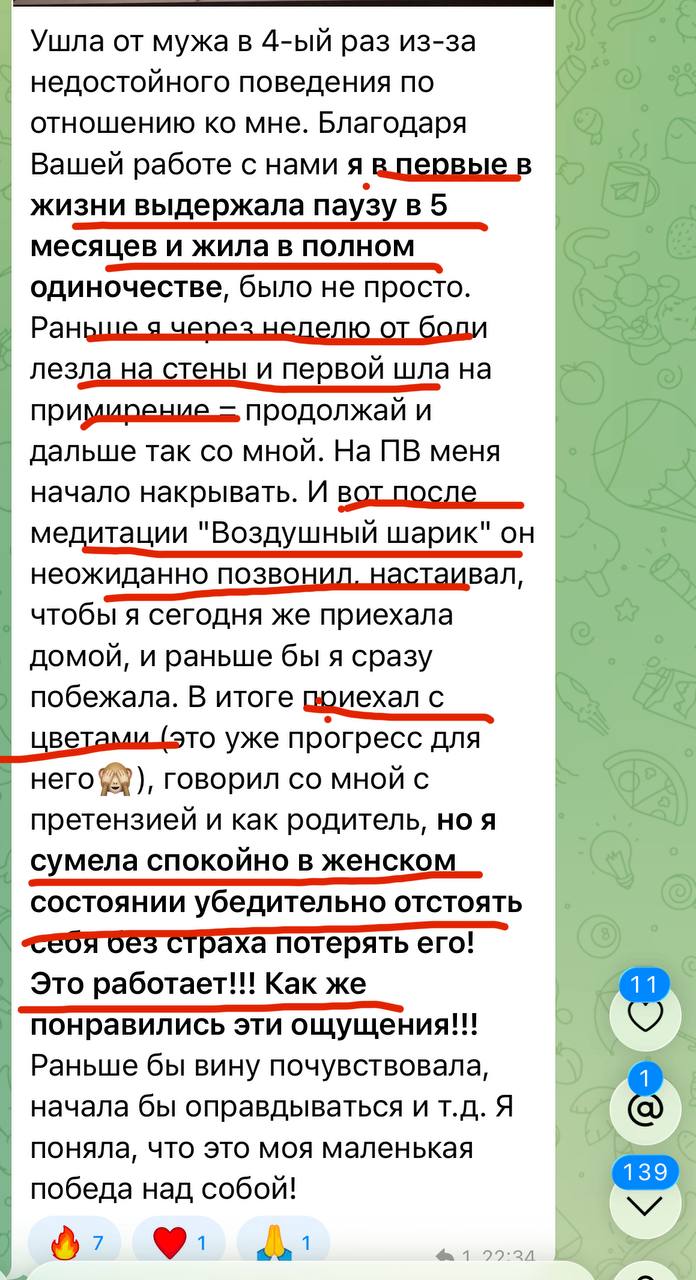 Один из ключевых шагов — отлепление от мужчины. Мы на протяжении всей программы будем делать глубокие медитации, направленные на сепарацию, символическое расставание и прощание с тем, кто причинил или причиняет боль, эмоционально цепляет